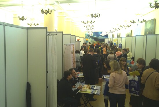 "Горизонты образования" - прекрасная выставка, помогающая подрастающему поколению определиться с будущим: выбрать ВУЗ и, возможно, профессию. 16.10.2014 г. выставка расположилась в Михайловском зале "Васильевского" конгресс-холла, колонны помогли отделить выставочные стенды от рабочей зоны, в которой юные посетители могли заполнять бланки, проходить тесты или ознакамливаться с интересующей литературой.